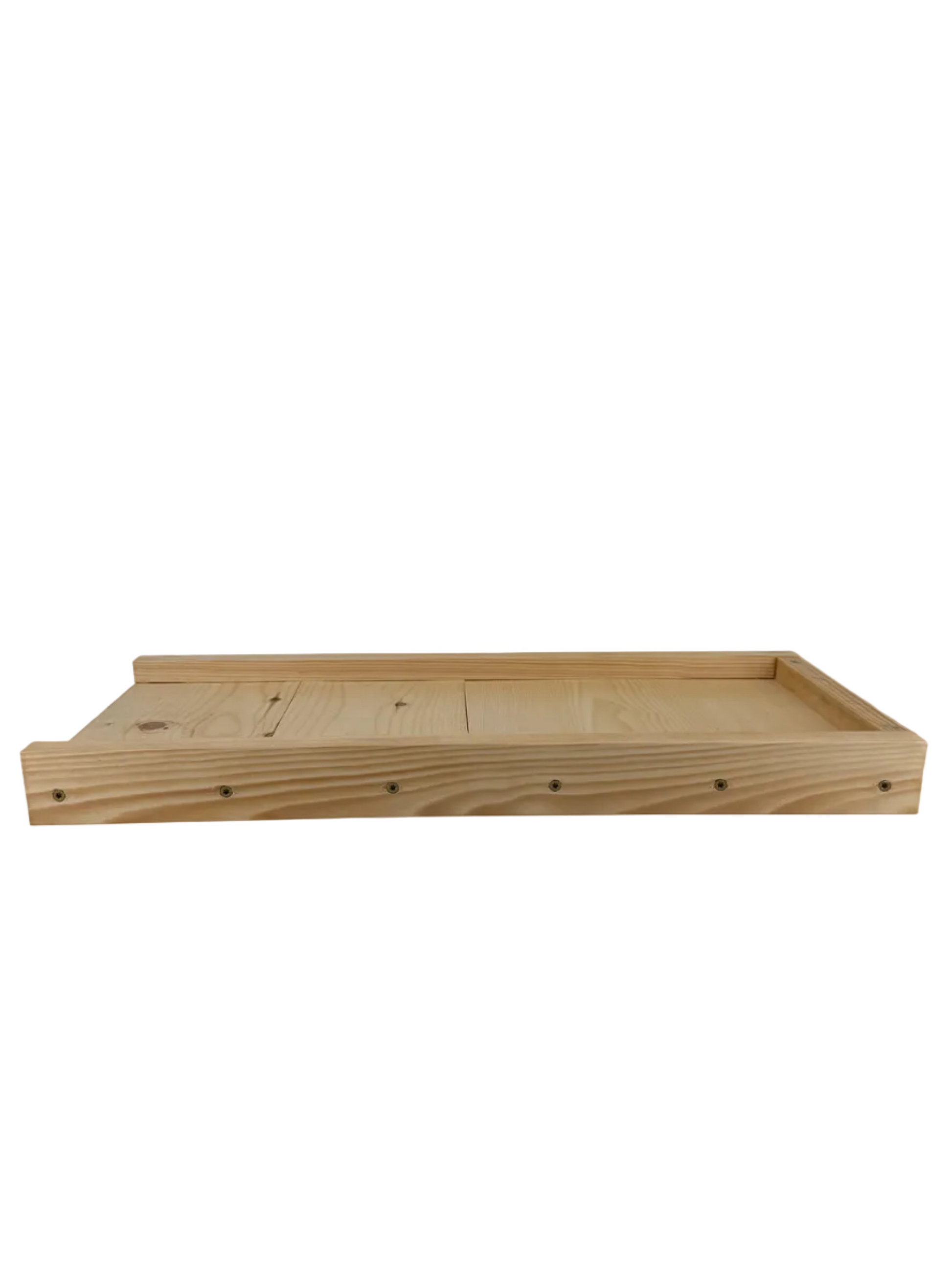 Our wax dipped 5 frame nuc reversible bottom board is handcrafted from pine and allows for a 3/4” entrance on one side and 3/8” entrance on the other. End cleats are glued and stapled and rails are glued and screwed. We then submerge these in 300 degree wax for 10 minutes to boil out moisture and impregnate the wood and joints with wax, protecting it from the elements for many years to come.